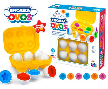 Os ovos de Encaixar ( Egg Matching Toy ), são perfeitos para brincar e ao mesmo tempo aprender as formas, cores, ação e reação, estimula a coordenação motora;